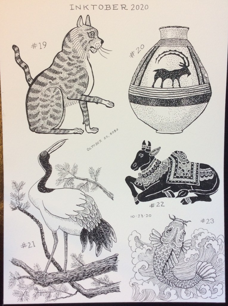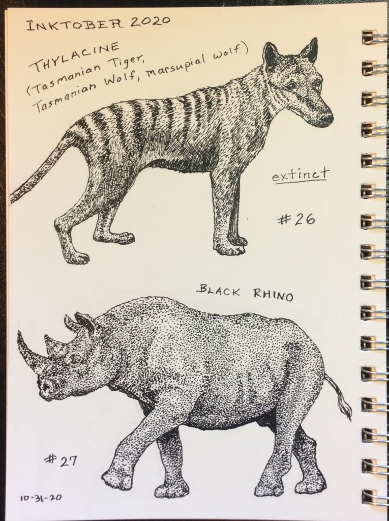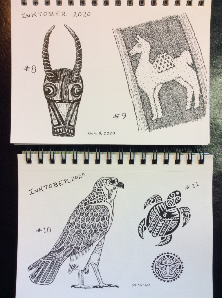 This year I failed the #Inktober challenge, only getting to drawing #27 today. It’s back to work tomorrow but when I can I’ll sketch the last few just to finish it out. Here’s drawings #8 through #27. It was interesting how two themes developed as #Inktober2020 went along. First was exploring the portrayal of animals in the art of diverse cultures. Then I decided to draw extinct species and other animals on their way to extinction, sort of a small tribute.